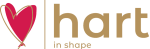 Logo met een gestileerde rode en gouden hartvorm aan de linkerkant, gescheiden door een verticale lijn van de tekst hart in grote gouden letters, met in vorm in kleinere gouden letters eronder.
